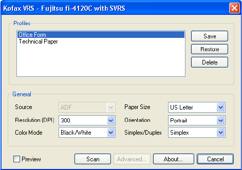 available via the TWAIN scanner driver. The Kofax VRS TWAIN interface is divided