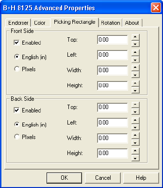 scanner supports duplex scanning, you may select picking rectangle settings for the
