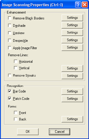Code check box in the Recognition group of the Image Scanning Properties dialog box