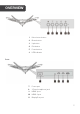 OVERVIEW 1 Menu/enter button 2 Down button 3 Up button 4 Exit button 5 Power button 6 LED indicator 7 Power port Ports 8 3.