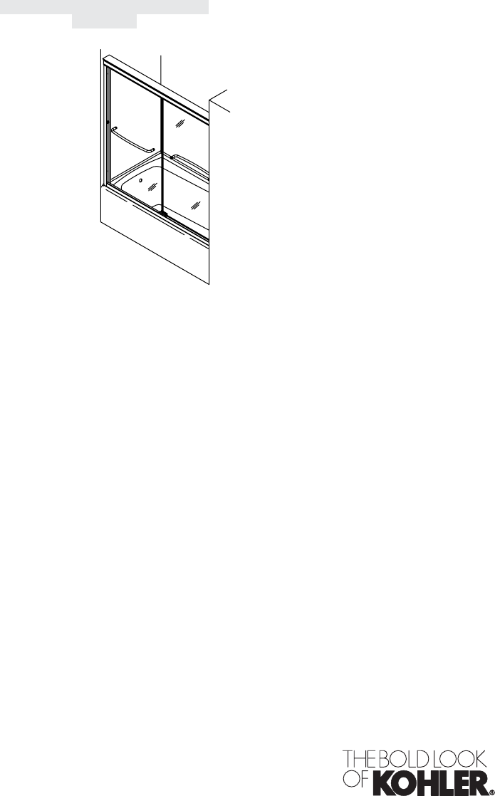 Guide d’installation Portes coulissantes de douche Outils et matériels Mastic à la silicone Rubancache Mètre ruban Poinçon Lime Tournevis assortis Couteau Perceuse et mèches assorties Niveau à bulle Crayon à papier et feutre Plus: Toile de protection Marteau de charpentier Lunettes de protection Scie à onglets ou à métaux avec une lame de 32 dents par pouce Boîte à onglets Pistolet à mastic Merci d’avoir choisi la compagnie Kohler Nous apprécions votre engagement envers la qualité Kohler.
