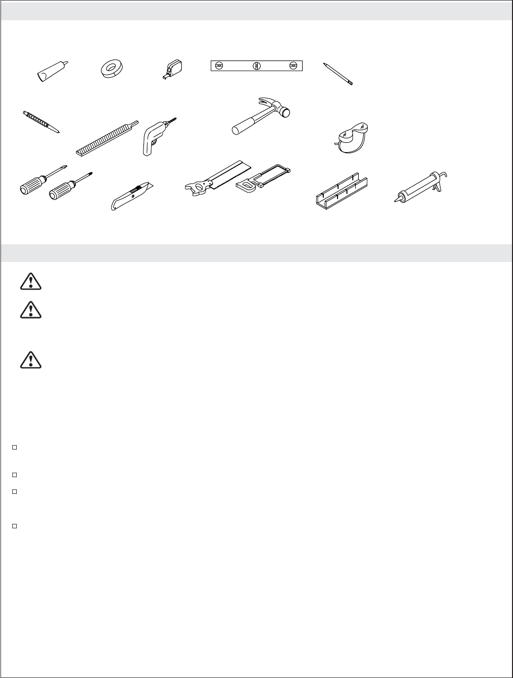 Before starting the installation, lay out and identify all of the parts. Inspect them for damage.