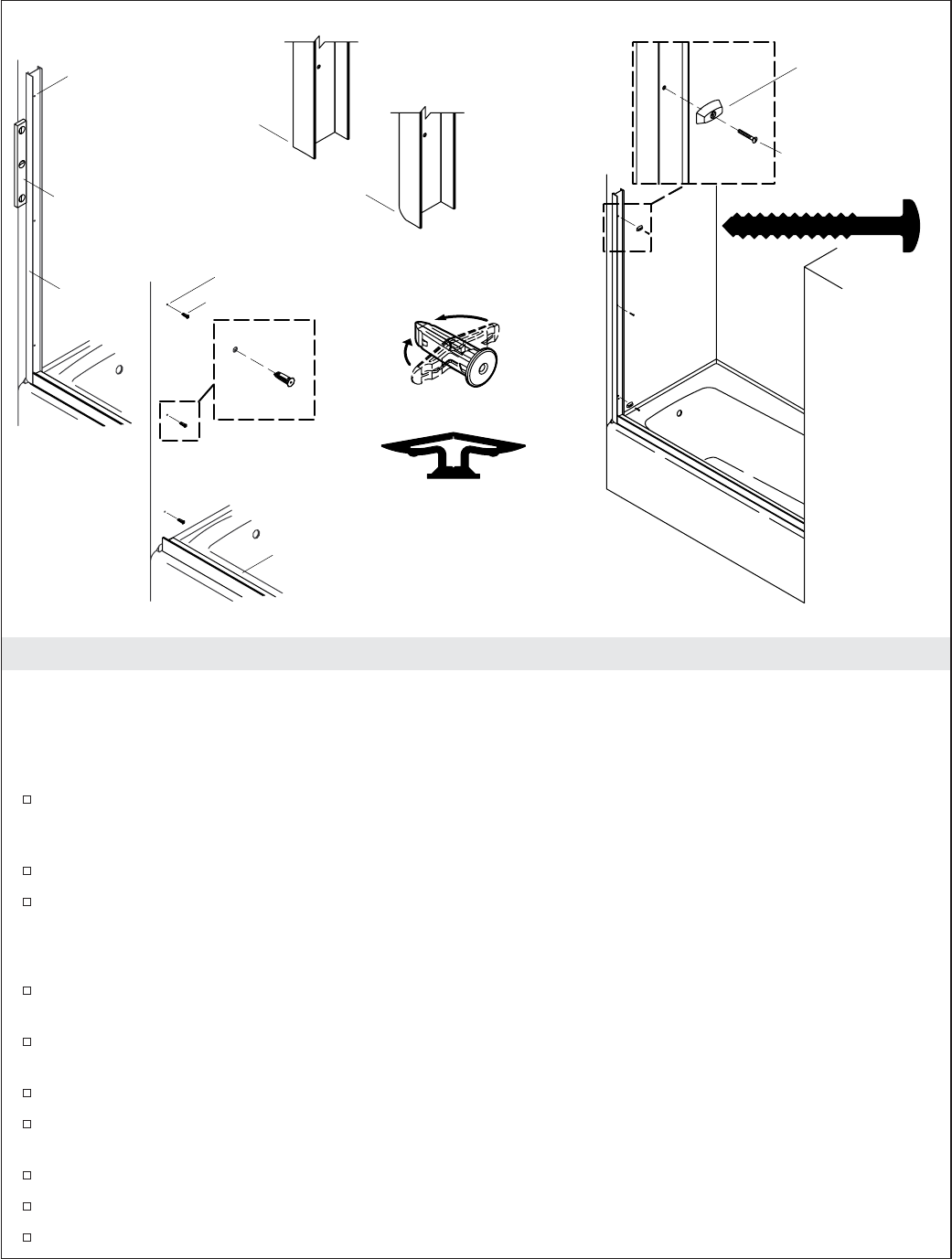 jamba bien encajadas en el carril inferior. El filo más ancho debe colocarse hacia el exterior de la ducha.