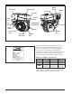 0XIÀHU Shield Fuel Tank Cap Air Cleaner 0XIÀHU Spark Plug Fuel Tank Throttle Lever Choke Lever On/Off Switch (If Equipped) Fuel Shut-Off Starter Handle Oil Fill Plug Dipstick Retractable Starter Serial and Data Label Oil Drain Plug Oil Drain Plug Figure 1. Control and Service Point Locations. E L P IMPORTANT ENGINE INFORMATION THIS ENGINE MEETS U.S. EPA PH2, EC STAGE II (SN:X) AND CA 2008 AND LATER EXH/EVP EMISSION REGS FOR SI SORE. EVP CODE:XX FAMILY TYPE APP DISPL. (CC) SPEC. NO.