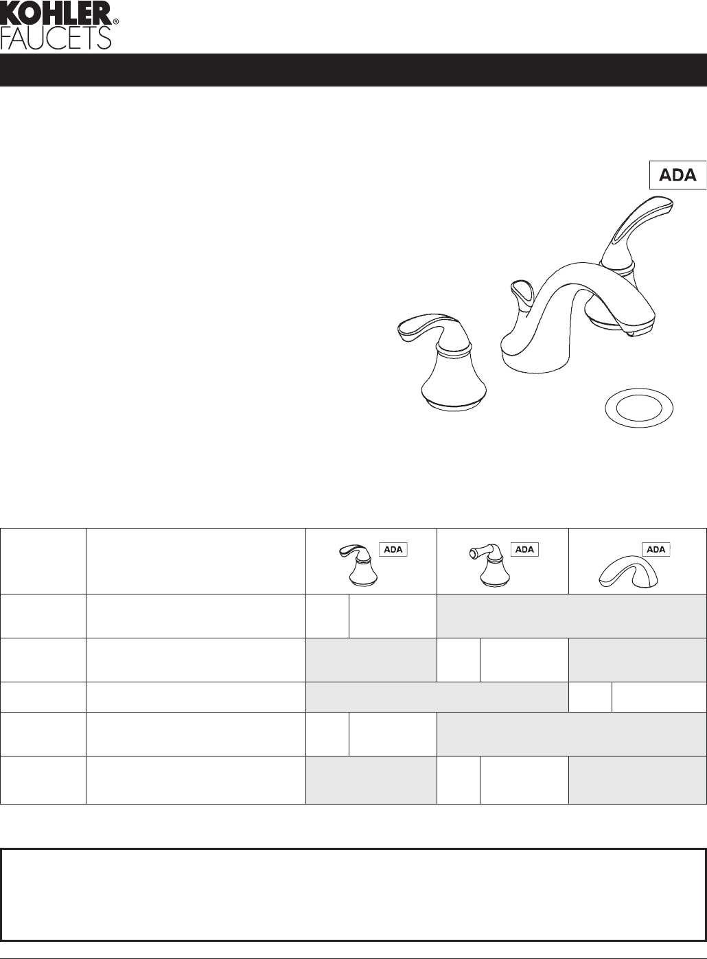Two-handle widespread lavatory faucet shall be of metal construction. Faucet shall feature reversible quarter-turn washerless