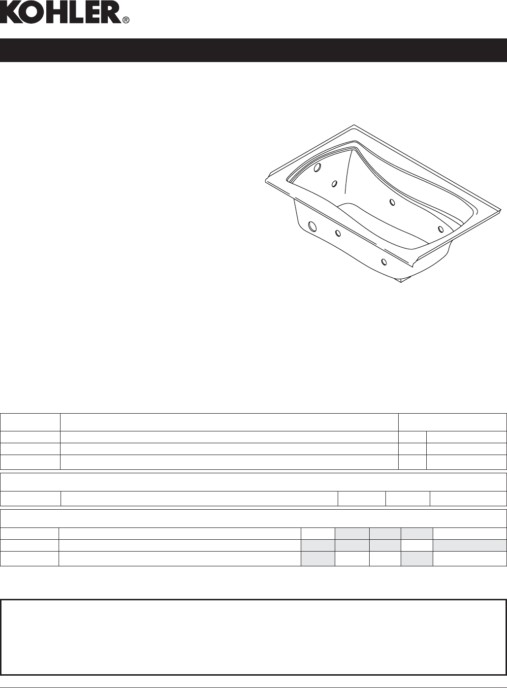 K-1224-H Bath whirlpool with heater – drop-in ❑ 0 ❑ Other_____