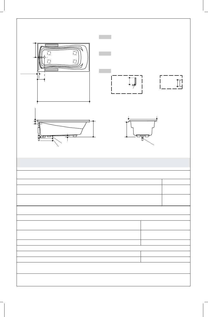 Basin area, bottom/Espace du bassin, base/Área del fondo 48″ (121.9 cm) x