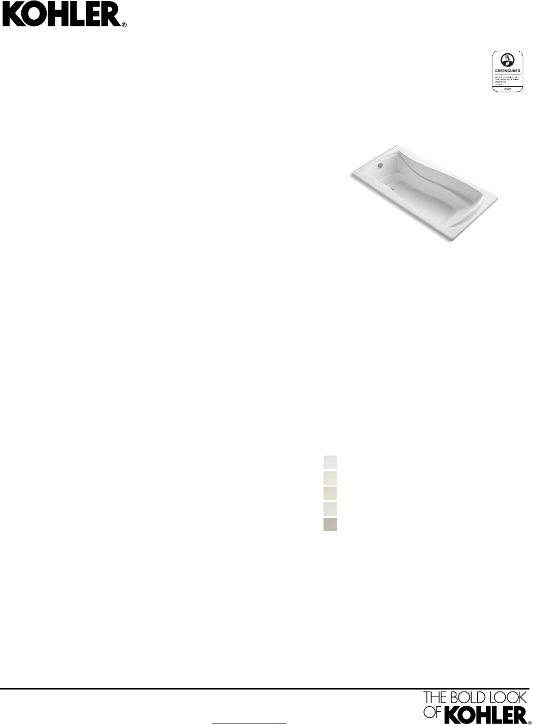 For the most current Specification Sheet, go to www.kohler.com.