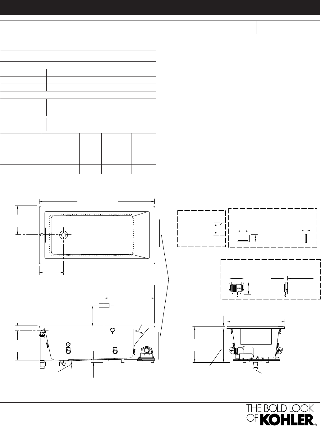 Floor support under bath must provide for a minimum of 56.7