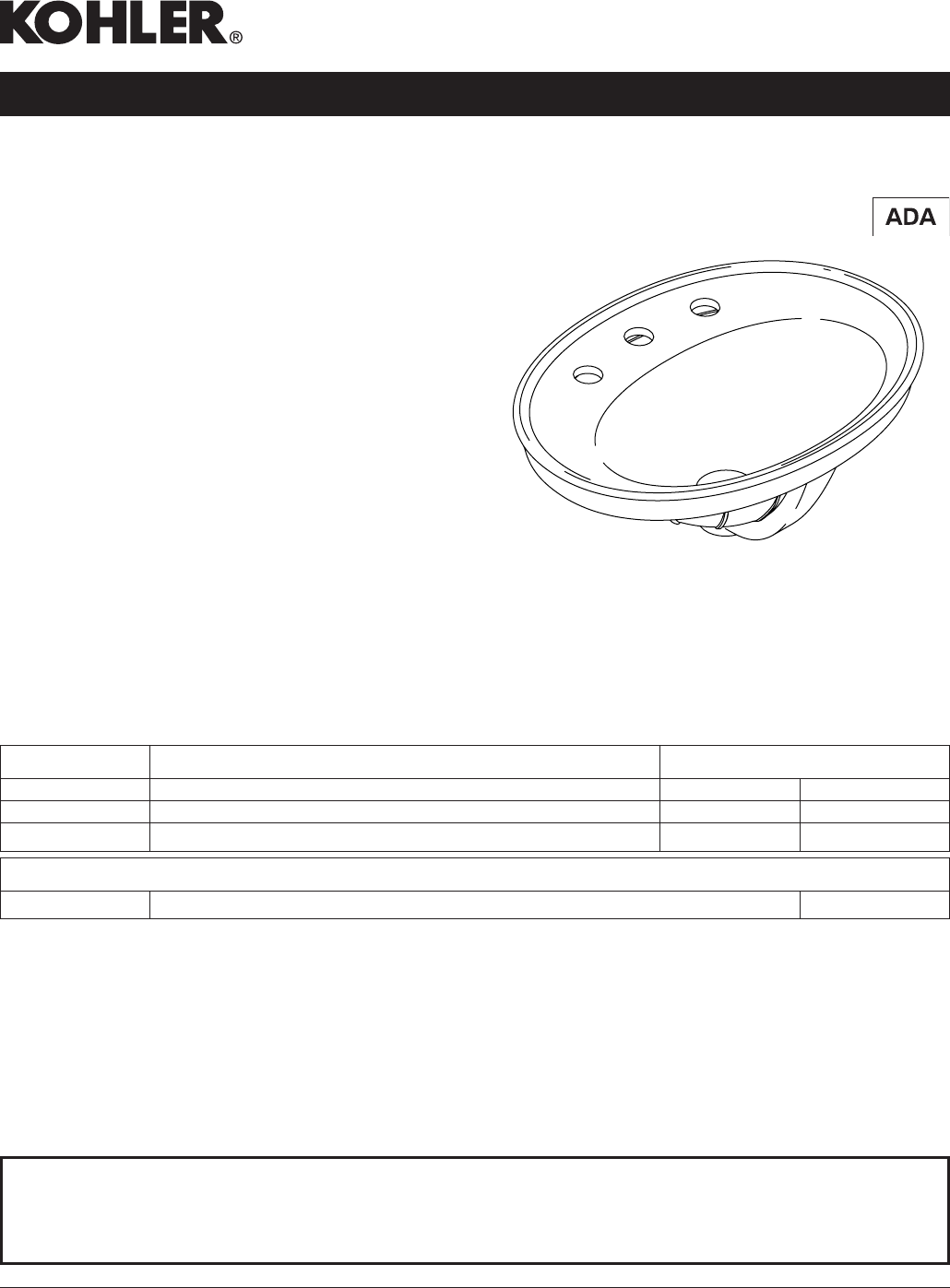 K-2075-8 8″ (20.3 cm) centers lavatory ❑ 0 ❑ Other_____