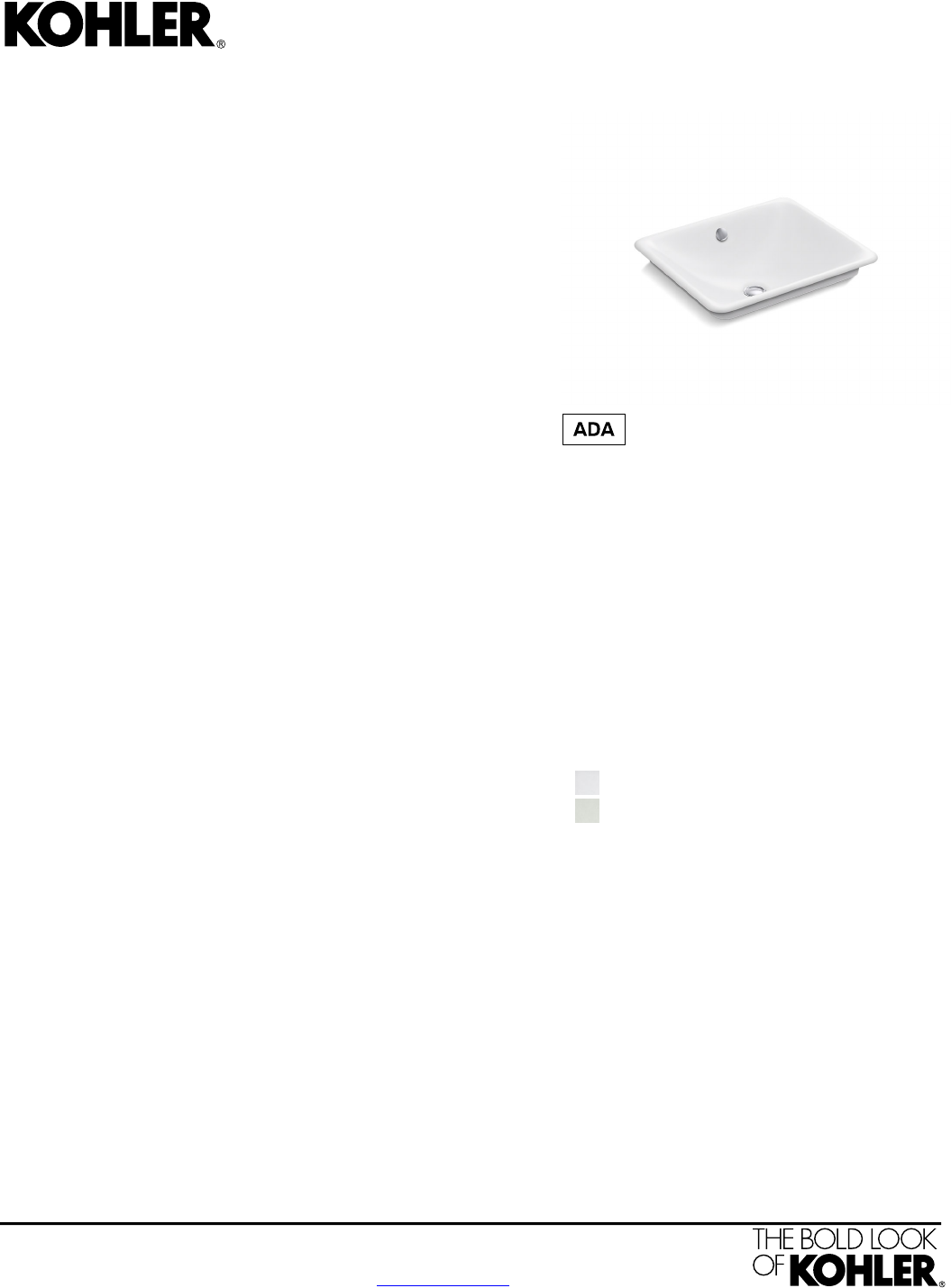 For the most current Specification Sheet, go to www.kohler.com.