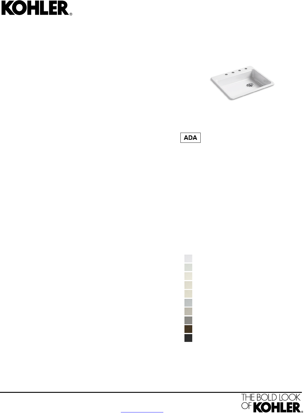 For the most current Specification Sheet, go to www.kohler.com.