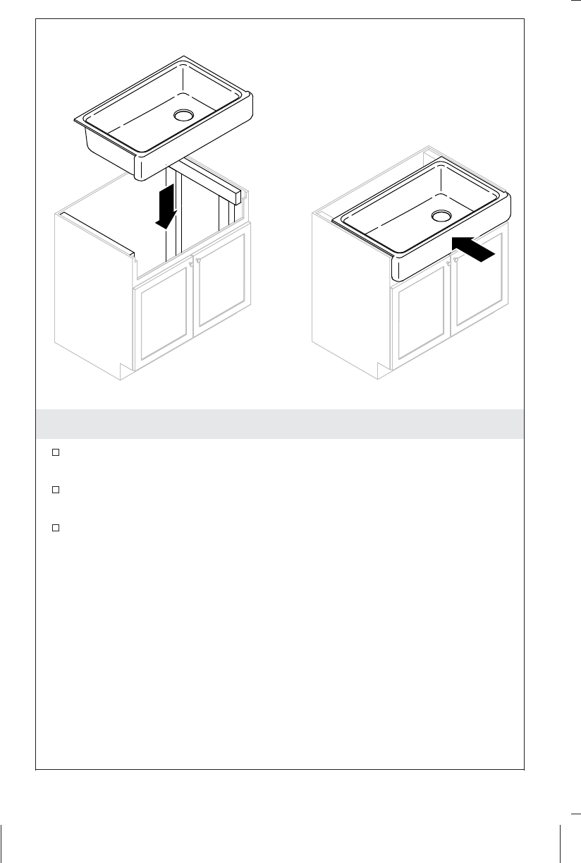 Lower the sink onto the supports; verify the sink is supported by