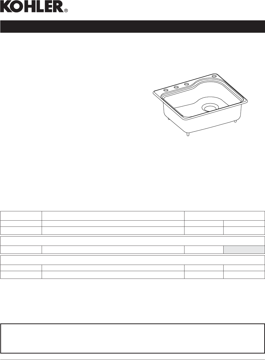 compartment. Sink shall be 4-hole (-4) or 3-hole (-3). Sink shall be 25″ (63.5 cm) in length and 22″ (55.9 cm) in width. Sink shall
