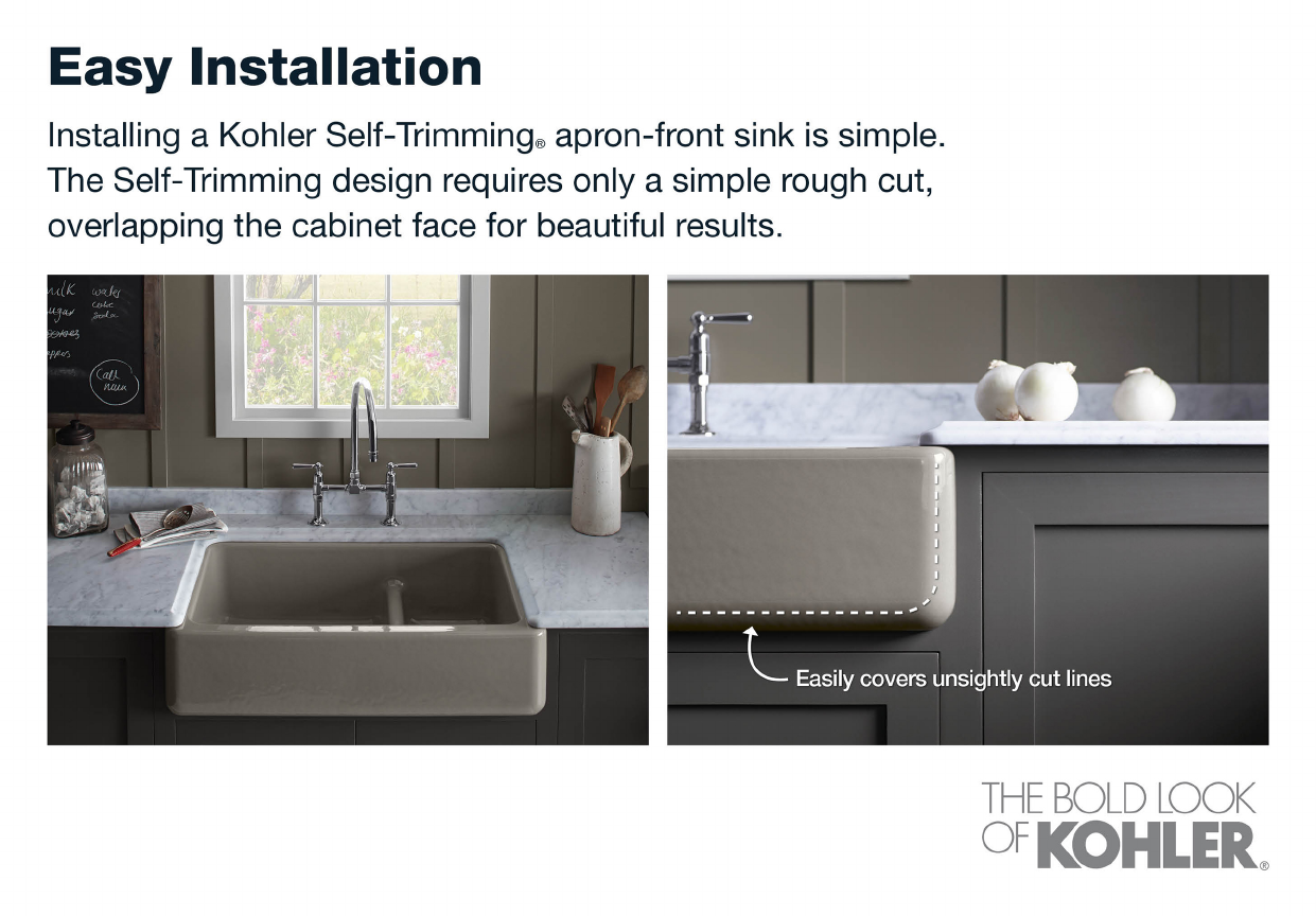 Easy Installation installing a Kohl er Self-Trimming. apron