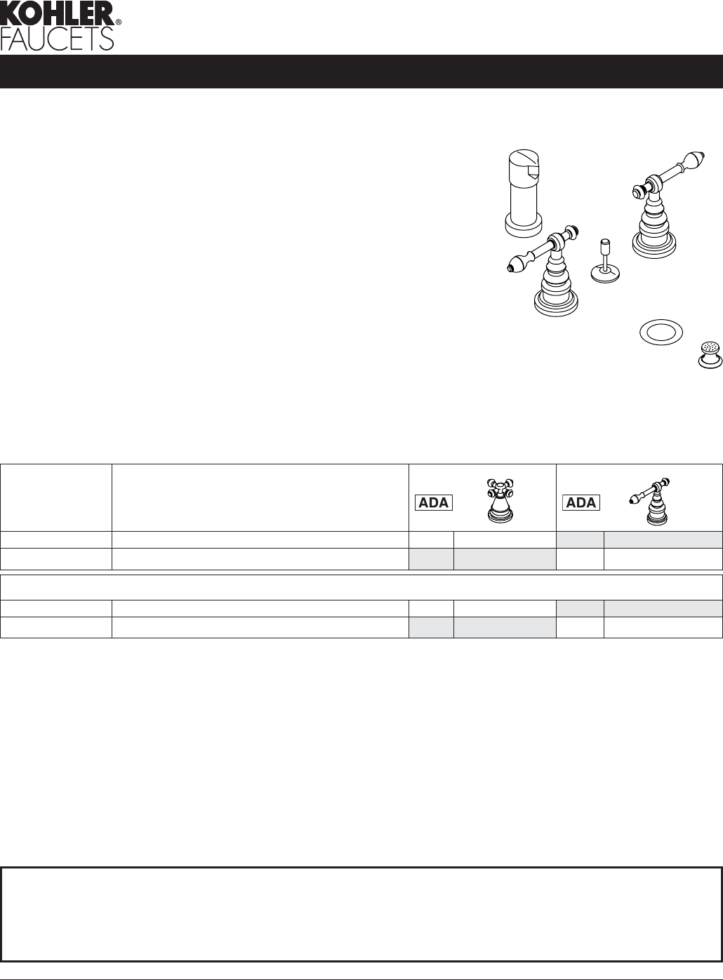 K-6814-4 Bidet faucet with lever handles ❑ PB ❑ Other ____