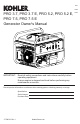 EN ESS PRO 3.7, PRO 3.7 E, PRO 5.2, PRO 5.2 E, PRO 7.5, PRO 7.5 E Generator Owner's Manual IMPORTANT: Read all safety precautions and instructions carefully before operating equipment. Ensure engine is stopped and level before performing any maintenance or service. Record product information to reference when ordering parts or obtaining warranty coverage. Specification Serial Number Purchase Date 37 590 01 Rev. I KohlerPower.
