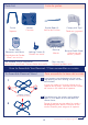 4 Hooks Ganchos Pull up bassinet frame to unfold support bars 3 and clip each support leg into the hooks on the floorboard. Estire del marco del moisés para desplegar las barras de soporte y ajuste cada pata de soporte a los ganchos en el suelo del moisés. all snaps on bassinet cover to 4 Fasten floorboard. Asegure todos los broches de la cubierta del moisés a la tabla de la base. 5 canopy and replace bassinet pad in 5 Attach bassinet, making sure pad is flat and firmly in 6 place.