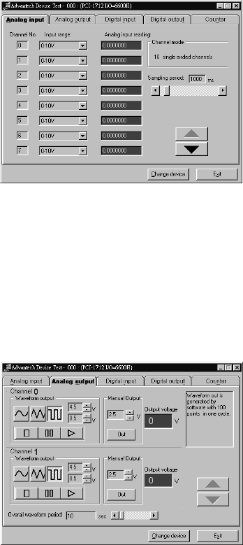 - Figure 2-9: Analog Input tab on the Device Test dialog box