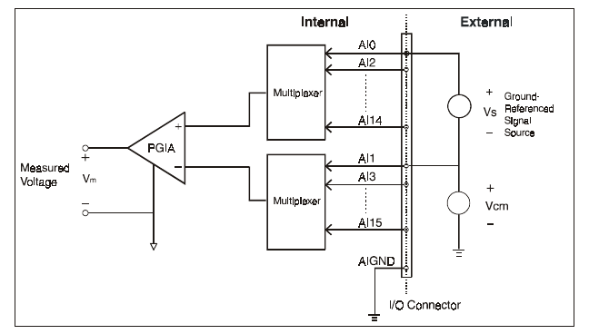 - Figure 3-3: Differential input channel connection - ground reference signal source