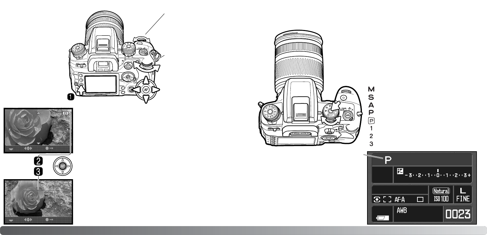 Paikannin (2) osoittaa näkyvillä olevan kuvaosan. Takasäädin