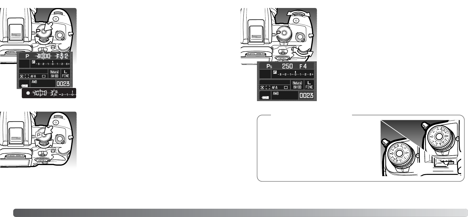paitsi että valotustavan säätimen kääntäminen täysautomatiikalle