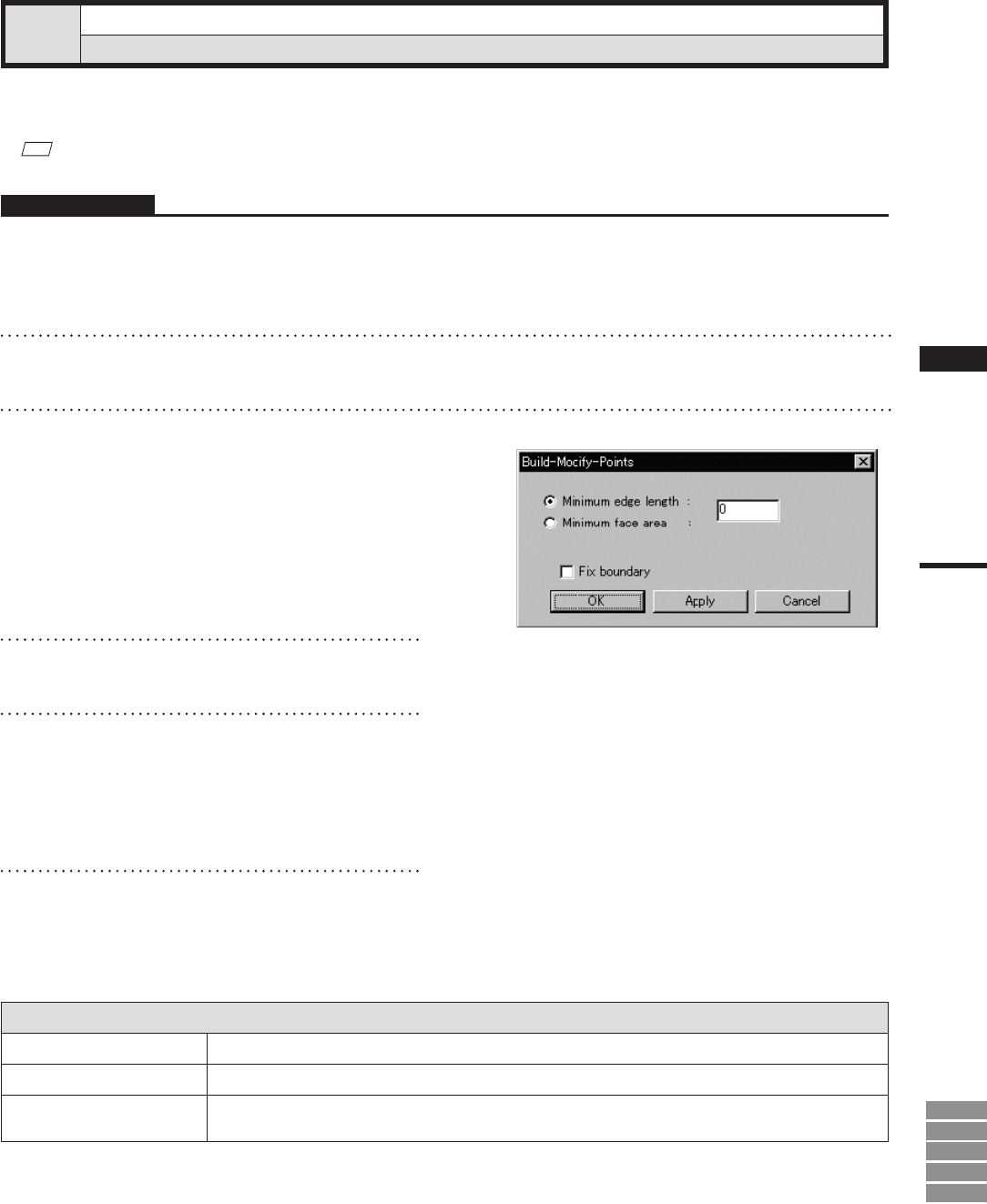 This command is used to rebuild the points selected in the currently displayed element by deleting small poly-