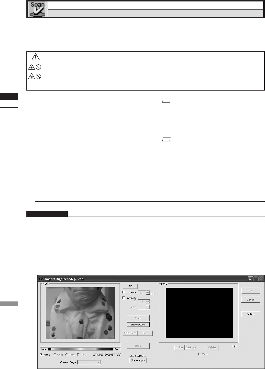the rotary stage remotely from this software. Registration of multiple scan data can be performed using the Calibra-