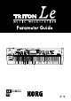 About this manual This “Parameter Guide” contains explanations and other information regarding the operations of the parameters and settings on the TRITON Le. The explanations are organized by mode, page, and tab. Explanations and other information on the effects and their parameters are also provided for each effect. Refer to this guide when an unfamiliar parameter appears in the display, or when you need to know more about a particular function.