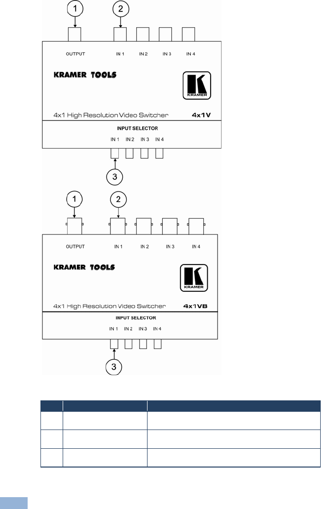 Figure 1: 4x1V and 4x1VB 4:1 Video Switchers