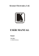 For the latest information on our products and a list of Kramer distributors, visit our Web site: www.kramerelectronics.com, where updates to this user manual may be found. We welcome your questions, comments and feedback. Safety Warning: Disconnect the unit from the power supply before opening/servicing. Caution PN: 2900- 000672 Rev: 2 Kramer Electronics, Ltd. Web site: www.kramerelectronics.com E-mail: info@kramerel.
