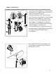 Step 4: Install drain Attach the ball rod (1) to the strap (3) using the clip (2). 3 1 2 1 2 3 Loosen the thumb screw (3) on the strap (2). Push down on the lift rod (1) until the stopper is in the open position. Retighten the thumb screw (3). Step 5: Flush faucet D E 9 After installing faucet, remove aerator (D) with included aerator key (E). Turn water on for 30 seconds to remove any debris. Reassemble aerator (D).