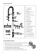 Replacement Parts 1. A. Spray Head B. Check Valve 2. Washer 3 17 3. Spray Hose & Spring 18 4. Pivot Ring 5. Check Valve Connector 2 1B 6. Set Screw 4 7. Cover Button 1A 5 19 8. Set Screw 6 9. Metal Handle 7 10. Cartridge Cover 8 11. Locking Nut 12. Cartridge 9 12 13 14 15 16 11 10 13. Rubber & Metal Washer 14. Mounting Nut 15. Mounting Screws 16. Faucet Extender 17. Aerator Key 20 18. 2.5 mm Hex Wrench 19. Hot & Cold Waterlines 20.