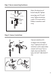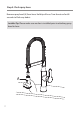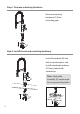Step 3: Secure mounting hardware Adjust the direction of faucet body (B). Tighten mounting nut (C2) until D D snug. Tighten mounting screws (C3) to nut with a Phillips screwdriver until snug B C2 C3 B Step 4: Connect waterlines D C D Connect waterlines (D) C to copper lines and angle stops. Tighten both ends of waterlines with an adjustable wrench until snug.