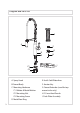 Replacement Parts 1. A. Spray Head B. Check Valve 2. Washer 3 3. Spray Hose & Spring 4. Pivot Ring 5. Check Valve Connector 6. Set Screw 4 2 1B 7. Cover Button 18 1A 5 8. Set Screw 9. Metal Handle 19 10. Cartridge Cover 11. Locking Nut 20 12. Cartridge 6 13. Metal Base Ring 7 8 14. Rubber & Metal Washer 15. Mounting Nut 9 12 13 14 15 16 16. Mounting Screws 17. Faucet Extender 11 18. Aerator Key 10 19. 2.5 mm Hex Wrench 20. Hot & Cold Waterlines 21 21.