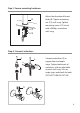 B Step 3: Secure mounting hardware Adjust the direction of faucet E body (B). Tighten mounting E nut (C2) until snug. Tighten mounting screws (C3) to nut with a Phillips screwdriver until snug B C2 C3 B D Step 4: Connect waterlines C E Connect waterlines (E) to copper lines and angle stops. Tighten both ends of waterlines with an adjustable wrench until snug.