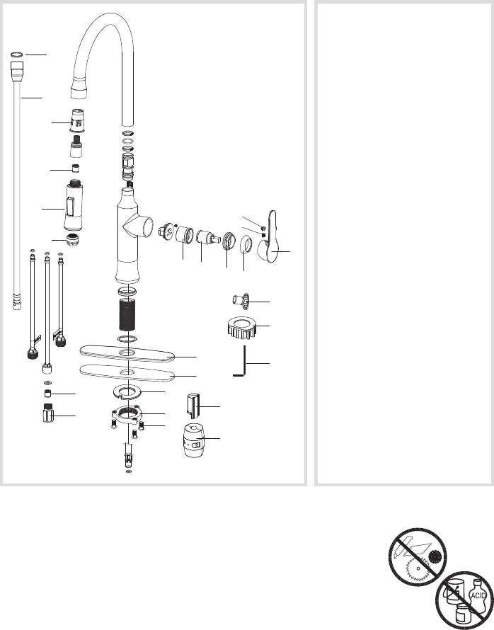2. Do not clean with soaps, acid, polish, abrasives, or harsh cleaners