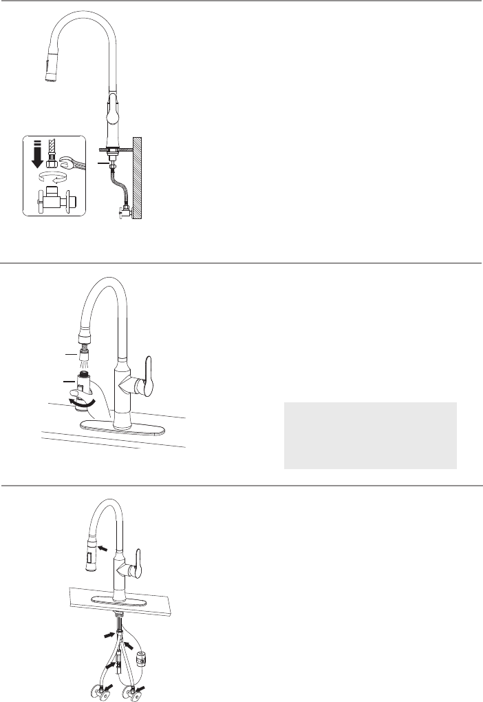 spray hose (5). Turn faucet on