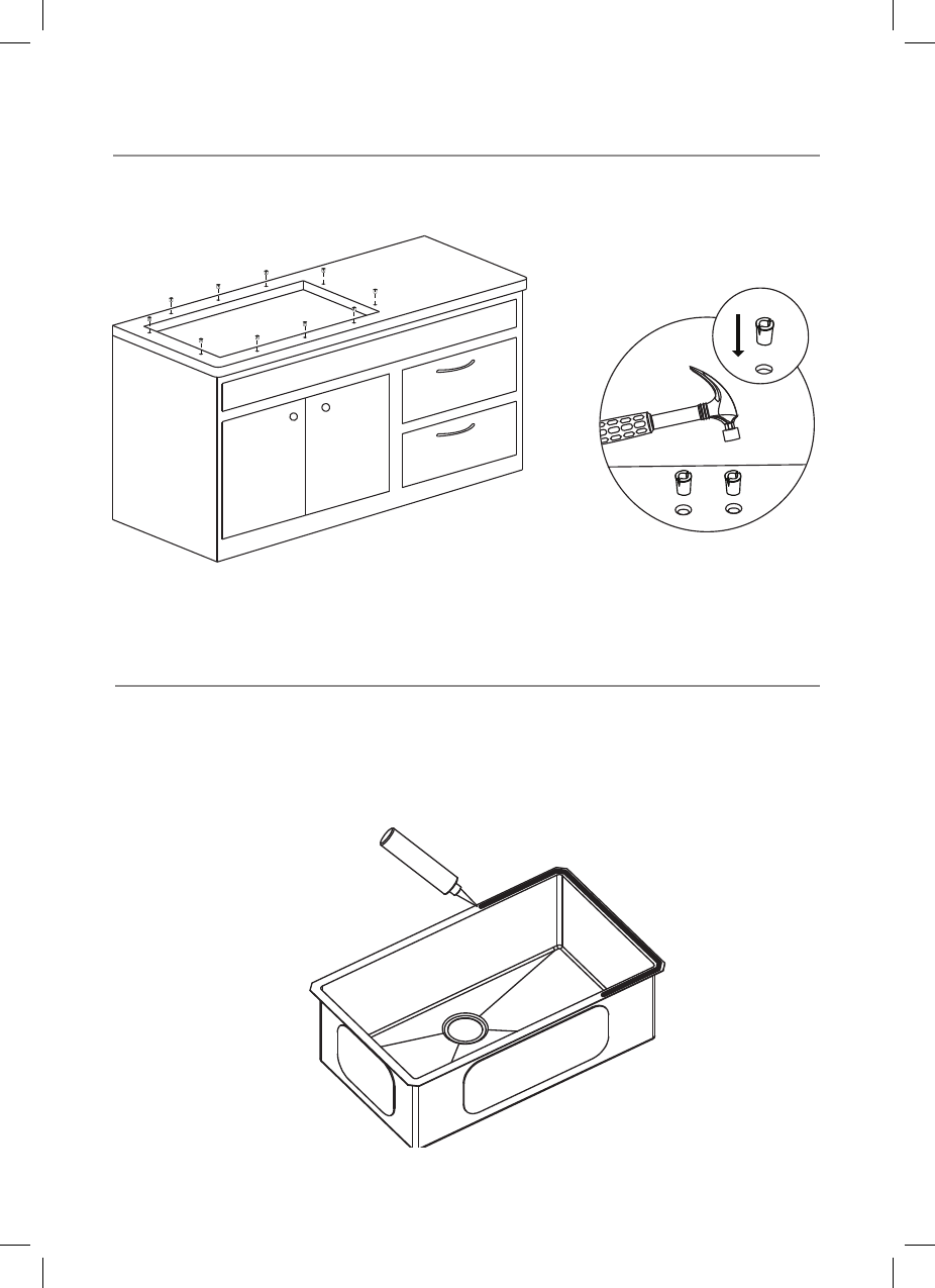 • Insert anchors into drilled holes and lightly tap with a hammer until ush