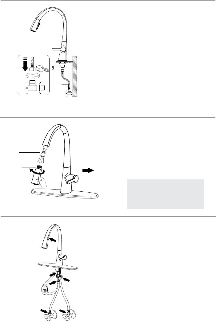 spray hose (5). Turn faucet on