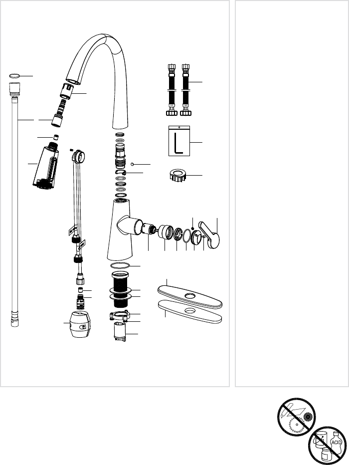 2. Do not clean with soaps, acid, polish, abrasives, or harsh cleaners