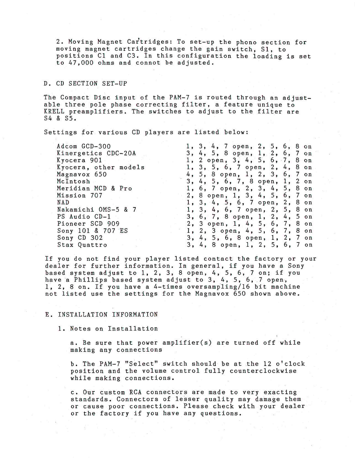 Krell Industries Manuals