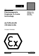 1. SYSTEM COMPONENTS 1.1 General information The Altoflux 2W IFM 4042 K-EEx electromagnetic compact flowmeter in 2-wire technology is in accordance with European Directive 94/9 EG (ATEX 100a) and approved for hazardous classified locations of Zone 1 and 2 by the KEMA conform to the European Standards of the EN 500xx series. The IFM 4042 K-EEx has the following approval number. KEMA 01 ATEX 2200 X The IFM 4042 K-EEx compact flowmeter is designed for ambient temperatures in the range of -40°C up to +60°C.