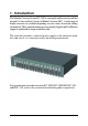 1. Introduction The Modular Converter System KC-1300 is a managed media converter rack that provides 16 slots and hosts 16 units of Media Converter (MC). A wide range of media converters are available depending on your variety of network cabling environment. These optional media converters include Gigabit and Fast Ethernet copper to multimode or single mode fiber cable. The rack unit provides a centered power supply to the converter modules and serves as a converter center and wiring concentrator.
