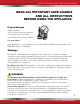 INSTALLATION GUIDE AND USER MANUAL WEAR PROPER APPAREL. Loose fitting or hanging garments should never be worn while using the appliance. Do not let clothing or other flammable materials contact surface burners until they have had sufficient time to cool. WHEN HEATING FA-TOR GREASE, WATCH IT CLOSELY AND DO NOT LEAVE UNATTENDED. Fa-tor grease may catch fire if allowed to become too hot. DO NOT USE WATER OR FLOUR ON GREASE FIRES.