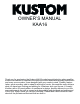 Thank you for purchasing the Kustom KAA16 model acoustic/electric guitar amplifier.