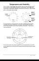 Temperature and Humidity The La Crosse Technology® Atomic Wall Clock has two analog sensors that measure surrounding temperature and humidity. The temperature information is displayed in degrees Fahrenheit and Celsius, and humidity data is displayed in percentage. Humidity display in % Outer ring displays temperature in degrees Fahrenheit Inner ring displays temperature in degrees Celsius The thermometer and hygrometer have been calibrated at the factory.