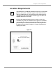Chapter 2: Prerequisites Location Requirements ! ! The Purifier XT Clean Bench should be located away from traffic patterns, doors, fans, ventilation registers, fume hoods and any other air-handling device that could disrupt its airflow patterns. All windows in the room should be closed. Figure 2-1 shows the optimum location for the bench.