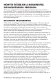 HOW TO ESTABLISH A MEANINGFUL AIR MONITORING PROGRAM To set up a program for monitoring air pollution there are two basic requirements. First, a means of collecting and analyzing the air sample is required. Second, a strategic plan for continuous sampling at a series of logical monitoring sites must be established. The recording of data over a period of time is important in observing the variations that take place at the monitoring sites.