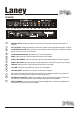 Laney 2 HCM30/HCM30R Equalization 3 4 5 6 4 5 6 On! 2 8 2 1 3 7 0 10 9 Volume 1 2 0 10 9 Crunch factor 3 3 4 5 6 82 1 Clean Input 7 1 3 7 8 0 10 9 1 5 6 7 3 4 5 6 82 2 Master Max volume 4 4 5 6 0 10 9 1 7 3 4 5 6 82 0 10 9 1 7 3 4 5 6 82 0 10 9 1 HCM30R HardCore Max 7 1 8 0 10 9 0 Head Bass Mid Treble Reverb CD/Line In switch Foot External speaker phones 7 8 9 10 11 12 13 14 Power * Diagram shows HCM30R.